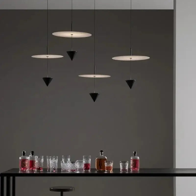 Dans un intérieur contemporain, cette suspension minimaliste avec cône noir et disque flottant se présente comme une véritable œuvre d’art lumineuse. Son design épuré et sophistiqué apporte une atmosphère apaisante et élégante, idéale pour sublimer un salon ou une salle à manger avec une aura de modernité discrète. Ce luminaire incarne la simplicité raffinée, offrant une ambiance chaleureuse tout en captivant le regard par son équilibre parfait entre forme et lumière.
