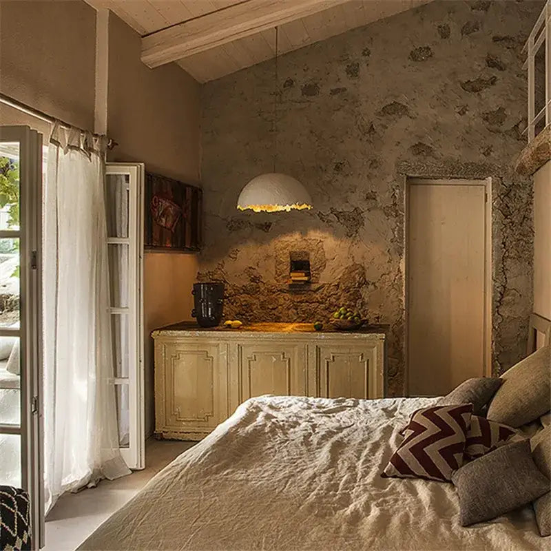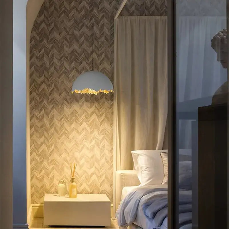 Conçu avec une attention minutieuse aux détails, ce luminaire associe des matériaux de qualité supérieure pour une durabilité remarquable. La surface craquelée, subtilement travaillée, rappelle un travail artisanal d’exception, tandis que le bord doré souligne l’ensemble avec élégance, sans extravagance. Son dôme mat joue un rôle essentiel en diffusant une lumière douce, non éblouissante, qui favorise la détente et l’harmonie.