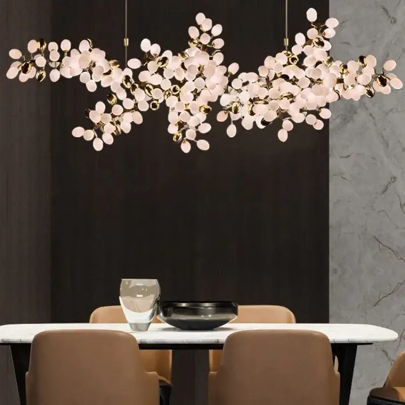Offrez à votre intérieur une atmosphère unique où raffinement et douceur s’entrelacent avec élégance. Ce luminaire suspendu incarne un équilibre subtil entre modernité et inspiration organique, transformant chaque pièce en un havre de sérénité et de style. Sa présence délicate, presque poétique, invite à la contemplation et sublime instantanément l’ambiance, que ce soit dans un salon intimiste, une salle à manger conviviale ou une chambre apaisante.